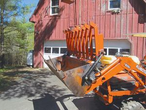 “I use it to handle everything from brush to big logs that I remove from my woods. I’m amazed at how well it works,” says Baril. “I never have to get off the tractor at all. I just scoop the branches with the forks to line them up, clamp down on them and move them wherever I want to. The shanks open up about 7 ft. high so I can pick up really big loads.”