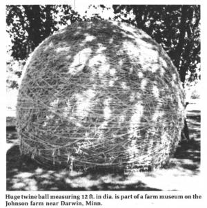 Francis' "world's largest" twine ball is located near U.S. Highway 12, 55 mi. west of Minneapolis. Visitors can also tour his farm museum of antique tools and field equipment.