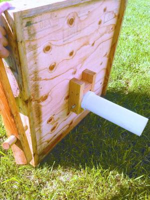 He fashioned a new door out of plywood with sides to hold apples. It has a 3-in. diameter pvc pipe that is mounted off-center and extends into the drum. It stops just above the nails. A wooden plunger is also designed to stop just above the nails when extended into the pipe.