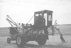 With the cab positioned directly above the boom, Jobgen says you can't beat the visibility of his home-built rig. And it's al-ways ready to go with no need to mount tanks or other equipment on a tractor. And maybe best of all, it was inexpensive to set up.