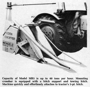 "We think it's in a class by itself for the money," says William Bayersdorfer, general manager for KMN Modern Farm Equipment, a subsidiary of a West-Germany based firm where the machine is made. It sells for right at $3,500 and, despite its small appearance, boasts a whopping 40 tons per hour capacity with a 60 hp. or larger tractor. "It'll keep up with a lot of two-row choppers," says Bayersdorfer. "Its direct drive system is capable of handling tractors up to 100 hp."