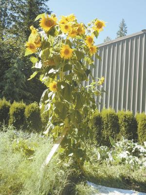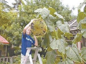 In Sandy, Ore., Larry Hilliard has spent a few years developing his Super Sunflowers that grow 14 ft. tall and produce about 30 heads.