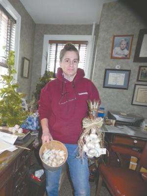 They sell garlic at several farmers’ markets as well as from Stremlo’s home. Garlic is sold as single bulbs, in braids, and in packs of multiples. Braids are decorated with wheat straw and other material.