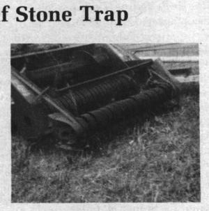 "You lose a little forage through the gap but the little you lose is more than repaid by stopping the rocks," says Digney. He used an old Massey 21 pickup cut down to size for the job but says he's experimenting with other belt-type pickups. He says the old-style pickup has a tendency to wrap. The add-on header is belt-driven off the forage harvester pickup.