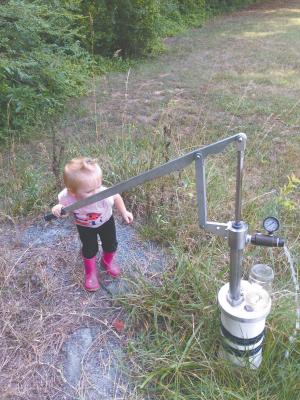 Installation is as easy as replacing the well cap with one with an inlet for drop pipe and sucker rods. Slide in the required lengths of pipe and install the pump head. All that remains is to add a hand lever or gear motor.