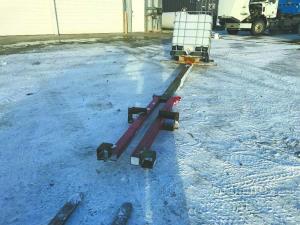 To add stability - and safety - to the tote, he hooked two ratchet straps to the end of the beam and strapped them to the skid steer forks.