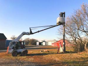 The project was worth it because Heuchert installed about 25 lights around the farm. It’ll come in handy for tree trimming as well. With a 13-ft. pole saw in the bucket, he figures he can reach just about any branch.