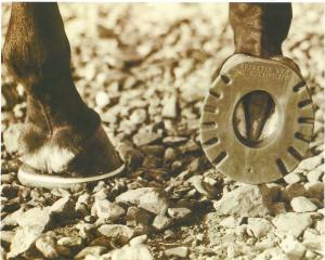 “We reversed the configuration,” explains Melinda Balint, co-owner of Equithotics Inc. that sells the patented Sneakers, invented by co-owner Kirk Adkins. “Instead of the pad between the hoof and shoe, it’s on the ground surface. With the nail heads seated into the aluminum bar shoe, the nail clinches and the shoe stays tight and secure. This allows for the pad material on the ground surface to absorb concussion and wear as the horse requires.”