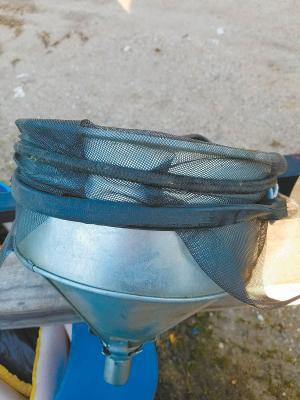Gary Swensen, Yankton, S. Dak.: “The little screen in the bottom of a funnel came loose and ended up in the bottom of my fuel tank. Instead of throwing the funnel away, I made a big screen from some window screen and a tarp strap. It goes over the whole top of the funnel. It won’t win a beauty contest but it keeps my fuel clean and it won’t fall out of the funnel.”