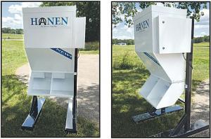 Solar-Powered Automatic Cattle Feeder LIVESTOCK Feeding Equipment A new cattle feeder tells cattle when to eat by emitting an audio signal doing so multiple times throughout the day Dave Barney president of Service Line was looking for a better way to feed his own cattle and the Automatic Solar-Powered Cattle Feeder was the result “We built the first unit to handle smaller herds of up to 10 full-size animals ” says Steve Meyer of Service Line “The demand was there so we added a larger unit for herds of up to 20 head The feeder can handle greater numbers if feeding calves or smaller size animals ” The smaller feeder is 6 ft wide 9 ft long and 8 ft tall The larger one is circular in design with an 8-ft diameter and an 8-ft height Both feeders have hopper capacities of 3 000 lbs Ask for Barney to discuss price The Hanen feeders are fabricated from heavy-duty steel and are 100 percent powder-coated for durability Individual calf guards can be installed Optional vision blockers are also available ensuring separate feeding stations for each animal An attached battery is recharged by a solar panel making the programmable feeder fully portable It’s designed to be picked up and moved by a tractor with forks Once in place it can be programmed to deliver desired amounts of feed up to 6 times per day “I’m dedicated to providing controlled nutrition that results in high-quality animals ” says Barney The company points to studies that show a balanced diet evenly distributed throughout the day creates a calmer animal on less feed without sacrificing growth Contact: FARM SHOW Followup Service Line Inc 2320 Zinga Dr Reedsburg Wis 53959 ph 608 524-0204 or 800 774-7900; www automaticcattlefeeder com