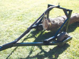 “I recently rebuilt the log skidder so that it works even better. All I have to do is back the skidder up over a log, then wrap a chain around the log and hook it onto the hook on the skidder. As I pull forward, the log will raise itself and automatically drop down to the ground when I stop. I don’t have to lift, roll, hoist, or manipulate the log in any way. It’s a simple design that works great.”