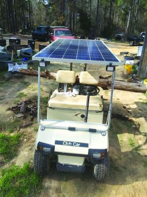 Since the storms, Mull has gotten requests from people to custom-build solar power systems for them. He also mounts solar panels on golf carts and on trailers. He uses his golf cart to charge his electric chainsaw when he gathers firewood, and he has two panels on his pickup.