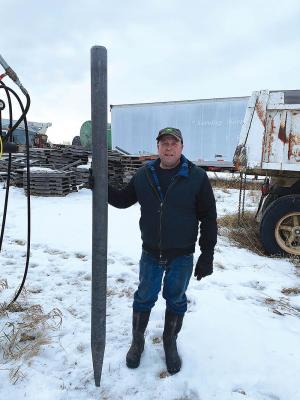 Farkash says the huge contraption took him 2 1/2 years to perfect, but now he uses it to make 4-in. dia. by 7-ft. long plastic fence posts from many types of scrap plastic, including used grain and silage bags.