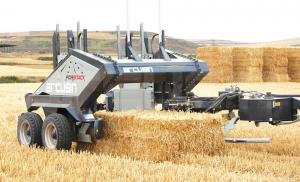 Fully loaded, the Forstack can carry four 3 by 3-ft. bales or three 4 by 4-ft. bales. “It is light and requires only a minimum of 100 hp. It’s pto driven, so there is not a lot of hydraulics.”