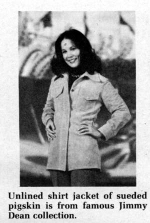 Jimmy Dean International offers a popular array of suede pigskin blazers, sport jackets and coats for both men and women. They're available in a wide variety of styles, sizes and colors, ranging from 6 to 16 for ladies, and 36 to 52 for men. They're being sold in leading fashion stores. If you don't know where they're available locally, contact: FARM SHOW Followup, Jimmy Dean International, 1341 W. Mockingbird Lane, Suite 1100 E, Dallas Texas 75247 (ph. 214-638-1190).