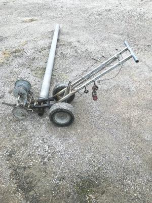 “The output shaft on the motor has a 1 1/2-in. pulley that drives a 6 or 7-in. pulley on a jackshaft,” explains Vandeventer. “A roller chain from a 2-in. sprocket on the right side of the jackshaft drives a 3 1/2-in. sprocket on the pipe drive, giving it a 10 to 1 gear reduction. There’s a 1 1/2-in. pulley on the jackshaft and a 7-in. pulley on the winch to gear it down even further.”