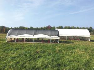 Hoop Coop Keeps Pastured Birds Safe LIVESTOCK Buildings Nathan Henderson’s hoop coop is easy to build and keeps his pastured broilers safe from predators as well as 70 mph winds Henderson and his farming partners raise organic poultry pastured pork and grass-fed beef on Reber Rock Farm Products are marketed in the farm store and from their website with home delivery nationwide every week He first shared the design details and pictures of the 15 by 24-ft mobile coop with fellow American Pastured Poultry Association APPA members “The size and shape have done very well ” says Henderson “We live in a mountain valley and get nasty winds every season and the hoop coops have never moved A hot line around the perimeter deters predators and we can hang 50 gals of water from the purlins without a problem ” Design details include 2 1/2-in square steel tubing as a base 1 3/8-in top rail for tubing and purlins plus wiggle wire braces to hold the roll-up sides He uses retainers on a flatbed wagon for bending the hoops “I splurged for wiggle wire channel to hold down the tarp and affix the end walls and roll-up sides ” says Henderson “We have a local quarry that gave me a roll of used belting that I used for the flap to cover the front and rear gaps ” Henderson covers the hoops with white tarp and shade cloth He uses closed-end walls to extend the season “They let us put the chicks out in late April and not finish the last batch until November ” says Henderson “Cold and wind prevention is as important to us as shade and airflow in the summer ” Henderson designed the hoop coops to handle 240 broilers Two of them let him handle batches of 480 broilers at a time “We may build a single coop in the future for the 500-bird batch size ” he says Henderson recommends the design but suggests a few points to consider before building your own “What batch size works for you and your processor?” he asks “Do you prefer welding or drill and bolt construction? Do you have a press a drill press a bender etc ? Do you have experience building greenhouses or a neighbor who does?” For more pastured poultry coop designs visit the APPPA website www appa org Contact: FARM SHOW Followup Reber Rock Farm 1693 Jersey St Essex N Y 12936 ph 518-573-8713; nathan@reberrockfarm com; www reberrockfarm com
