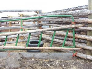 We needed to move the bulls into that corral quickly. At first, we simply tied the poles in place with baling twine. Then we came back and used long screws through the poles to secure them firmly to the fence.