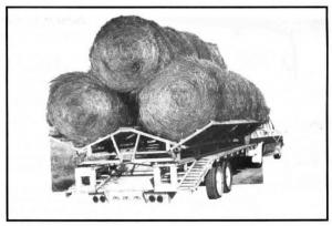 Once loaded on a trailer or truck flatbed, you leave the tractor in the field and haul the load to headquarters, at road speed, with your pickup or truck.