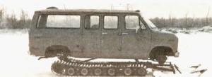The conversion kit was originally built and tested for rescue and patrol work on Lake Winnipeg in Canada. A converted van is comparable to vehicles built from the ground up that cost $40,000. A conversion kit to fit any van or pickup sells for $7,995 and can be removed during off months to convert back to over-the-road travel.