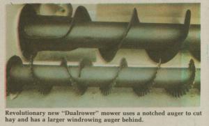"I was skeptical when they came out to demonstrate the new auger mower last summer. The demonstration was impressive but I seriously doubted if there would be any regrowth. I'm now convinced that it has absolutely no negative effect whatsoever on regrowth of the mowed crop at any cutting stage. We mow alfalfa with it at 8.2 miles per hour. Even used it this fall to mow and windrow corn stalks for baling. Corn-pared to conventional sickle-type mowers, the Dualrower only has two moving parts so there's virtually no maintenance," Lane points out.