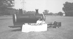 You've never seen a barbeque grill like the one built by Ralph Edwards, Efland, N.C., that's 22 1/2 ft. long with a 5-ft. dia. tank and a pair of smokestacks on top that make it look like an old railroad engine. It even has a large brass dinner bell at one end of the grill.