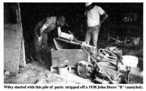 But 100 hrs. of work later, Wiley had completely restored the 1938 John Deere "B" (unstyled) to like new condition. And he didn't have to buy more than 5 or 6 parts to do it. He found nearly everything he needed in that jumbled up pile of parts.