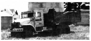 Westerlund bought the truck with a stripped-down frame from a local town's fire department He used a chain saw to cut off the top part of the wooden box from an old H & S self-unloading wagon, leaving the sides 4 1/2 ft. high. He lengthened the unloading conveyor by 3 ft. so he wouldn't have to get as close to the feed-bunks. Power is supplied by a hydraulic pump that's belt-driven off the engine. The pump powers an orbit motor that mounts in place of wagon's pto shaft. An on-off valve mounts inside the truck cab.