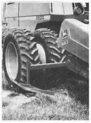 In the future, Broaddus plans to add "dual cleaners" to the brackets that hold his stalk movers. They'll consist of a piece of 3/4-in. thick plate steel about 10 in. wide to run between the duals and keep them free from mud and corn stalks during a wet harvest.
