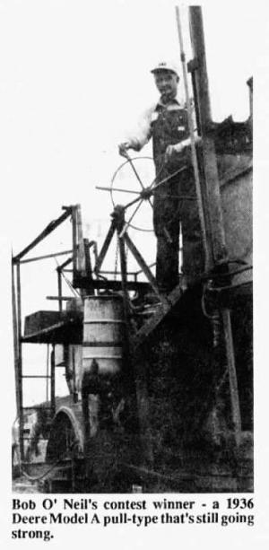 The upcoming season marks the 55th consecutive year that Bob or his dad have gone to the field with "Old Faithful" ù a 1936 Deere Model A pull-type that Bob's dad, and his uncle Frank, bought new for $5,000, which included an RD-6 Caterpillar to pull it.