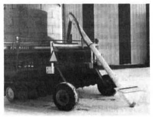 The bottom of the auger remains stationary behind the center of the drill and acts as a pivot point. The auger is powered by tractor hydraulics. It's made from PVC tubing and is equipped with bristle-type auger flighting with polypropylene tips that handle seed gently. Available for the Deere 750 15-ft. no-till drill and Case-IH and Great Plains 15-ft. drills.