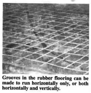 Pamper Your Cows With Grooved Rubber Flooring DAIRY EQUIPMENT & IDEAS Dairy Equipment & Ideas 18-5-29 "It reduces ieg and health problems, saves on bedding and makes for easier cleaning," says New York dairyman Bob Gabel who's doing a booming sideline business in grooved rubber flooring for free stall and conventional barns.