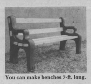 You get two molded plastic end legs and put in your own 2 by 4's for whatever length bench you want up to about 7 ft. The plastic legs are light yet stable so the bench can easily be moved from place to place. For more permanent use, you can fill the legs with sand through plugs in the back or they can be bolted down, to a deck for example, through flat spots on the bottom of each leg.