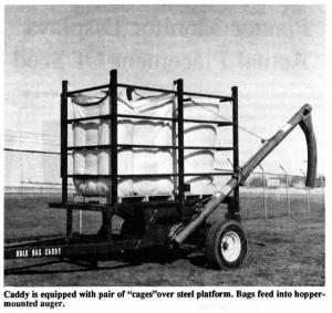Sudenga Industries, Inc., George, Iowa, says its new "bulk bag caddy" may be the answer. The patent pending caddy was invented by Missouri farmer Terry Sevits and can be used to both transport and unload two bulk bags at once.