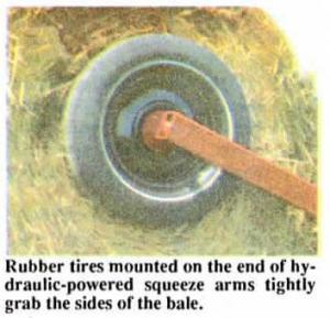 Can be mounted on either the 3-pt. or front-end loader. Handles 4, 5 or 6-ft. dia. bales. Sells for $975 (U.S.).