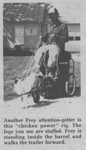 "It took some training to get the horse to power it. At first, it was like putting a pig on ice," says Frey. He says that some people have accused him of cruelty to animals but he feels it's a lot easier for the horse than pulling a plow.
