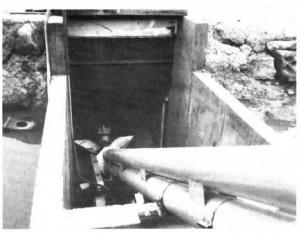 The 8-in. dia. Hutchinson grain pump, powered by a 15 hp electric motor, is housed in a concrete enclosure alongside the dump pit. "The grain pump cost al-most twice as much as a 10-in. dia. auger, but it has more capacity, requires less than half as much power, and reduces grain damage," says Riddle. "The 10-in. dia. pit auger is powered by a 5 hp electric motor. It runs at almost 100% efficiency because it's flat and is always loaded down with grain. In fact, I had to install a gearbox to slow it down. If I could do it over I'd install an 8-in. dia. pit auger and build a 500 bu. pit for more capacity. I plan to install an automatic switch which will let me empty the truck and leave immediately. The pit auger will shut off automatically, then after a 15-second delay the grain pump will shut off."