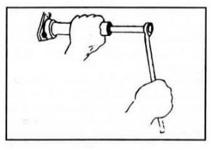 The main puller consists of two separate pieces that lock over the lip on the bearing. An outer sleeve slides over the locking pieces and a cap screws onto the threaded end of the main puller, locking the puller in place. Then a long bolt screws into the end of the puller, pushing against the end of the shaft to force the bearing off.