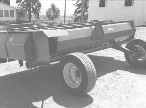 Rissler built a 12-in. side discharge auger on the 10-ft. windrower. It lays down a 4-row (30-in.) windrow on the right side of the machine. You can build an 8-row wind-row by simply doubling back to lay a second 4-row windrow adjacent to the first. It allows you to cut field trips by 50 percent compared with similar size middle discharge machines that restrict you to baling only a single row at a time.