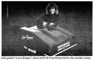 The Lawn Ranger, as it's called, has several safety features. Any pressure on the outside casing or on the bumper automatically shuts the unit down. There's also a remote control shut-down switch so that you can turn it off from a distance.