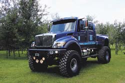 The world's largest street legal 4-WD pickup  was recently unveiled in Denver, Colo. The modified  International CXT has pickup styling with monster  truck impact.