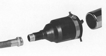 molded into one end. The sleeve fits over exhaust pipes on trucks, cars,