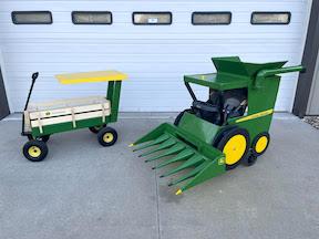 Taylor Neth’s son, Braxton, is off to a good start loving farm equipment. He has a baby stroller that looks like a Deere combine with a corn head and a coaster wagon with a 4020 ROPS canopy for shade. It all started with an image off the internet.
