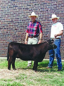 Neil Effertz showed off his cow, Pippa, at the recent Farm Progress Show at Amana, Iowa. At the time, she was the only miniature Angus in the U.S.