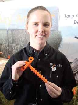If you've been looking for a better way to anchor big hay tarps, you'll like this new product we spotted at the World Ag Expo in Tulare, Calif. Hay Anchors are 7 1/2-in. long polypropylene screws that hold tightly in any type of bale to secure tarps.